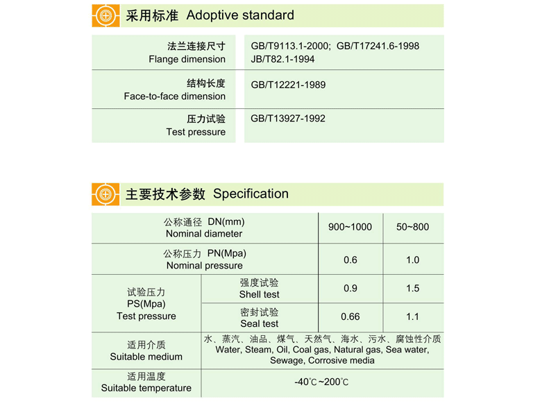 標準規范:1.法蘭連接尺寸:GB/T9113.1-2000  GB/T17241.6-1998     JB/T82.1-1994