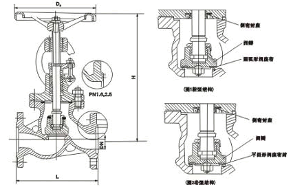 【J41H 型 PN100 鋼制截止閥產品外形及結構尺寸】